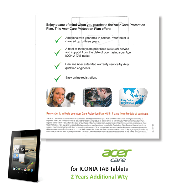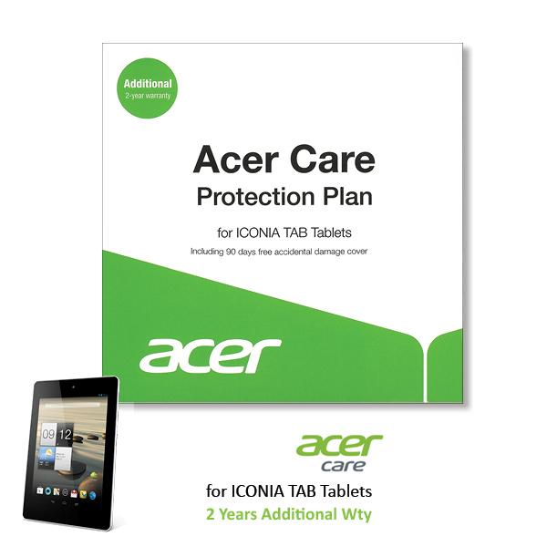 Acer ICONIA TAB Additional 2 Years Mail-In Service / Warranty – Uplift from Standard 1YR Mail In to 3YRs Mail In Warranty – Including 90 Days Free Accidental Damage Cover
