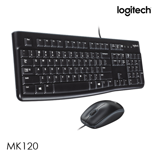 Logitech MK120 Desktop Combo – Logitech Desktop K120 USB Keyboard – Sturdy, adjustable tilt legs – Curved space bar – Plug-and-play USB connection – Logitech Conqueror – 920-002586 – 12 months limited hardware warranty